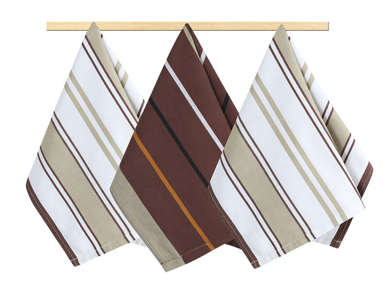 Kuchyňské utěrky jsou vyrobeny ze 100% bavlny o plošné gramáži 240g/m2. Jsou dostatečně velké a velmi dobře savé, v různých barevných variacích a dezénech. 100% bavlna zajišťuje dostatečnou savost použitého materiálu. Balení obsahuje tři kusy utěrek, barevnost utěrek může být odlišná oproti vyobrazení.