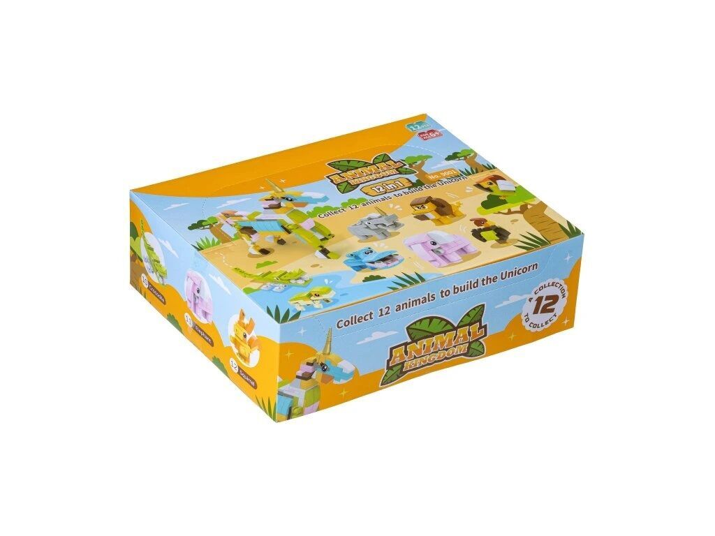 Kolekce 12 ks zvířátek. Poskládejte si 12 malých zvířátek anebo si z nich rovnou složte velkého jednorožce. Pro jeho složení musí být k dispozici všechny kostičky z boxu. Z důvodu velkého množství specifických dílků je stavebnice vhodná spíše pro větší děti. Každé zvířátko je baleno v samostatné papírové krabici. Kostičky jsou v plastikovém obalu s návodem. Na návodu je vždy na jedné straně návod ke složení zvířátka z krabičky a na druhé straně je pak část návodu pro složení jednorožce.