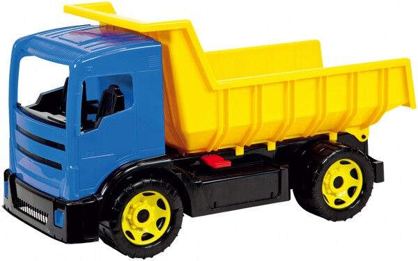 Velký plastový sklápěč na písek s rozšířenou korbou pro těžký náklad. Je opatřen pojistkou proti vyklápění. 2-osý.