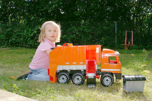 Plně multifunkční popelářské auto s odnímatelnou popelnicí a kontejnerem na kolečkách. Vyroben s kvalitního plastu.