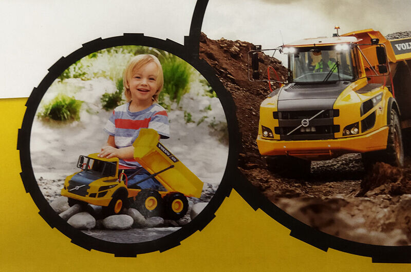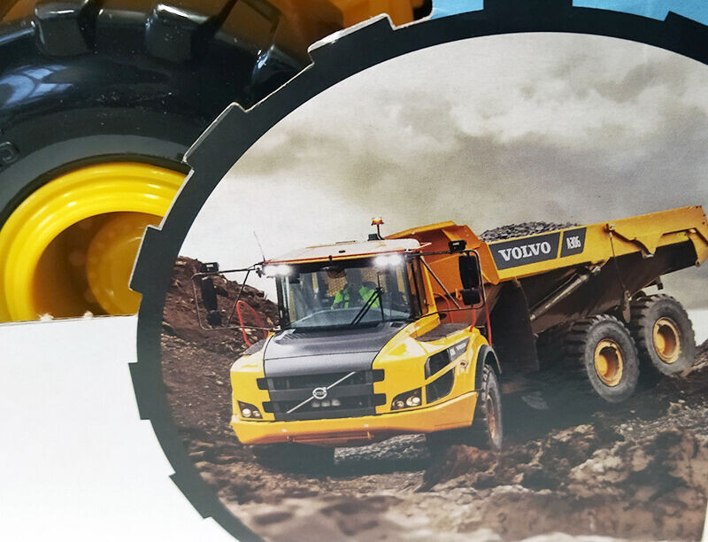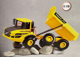 Nákladní auto Volvo má 5mm pozinkované trojité nápravy s off road odpružením kol. Snadné otáčení díky otočnému a sklopnému kloubovému řízení.- Rozměr auta: 55 cm (1:15)