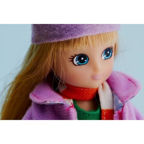 Autumn Leaves je panenka v podzimním stylu, perfektní parťačka pro psa bílga Biscuita. Má oblečeny nejkrásnější kousky – šik kabát, šálu, boty, manšestrovou sukni a pruhované legíny.