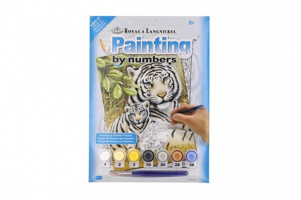 Malování podle čísel Bílí tygři 22x30cm s akrylovými barvami a štětcem na kartě