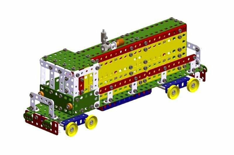 Velká čtyřvrstvá klasická stavebnice. Stavebnice obsahuje základní sestavu součástek a k tomu navíc další součástky pro stavbu velkého požárního auta, velkých jeřábů a dalších modelů. Součástí stavebnice je velká návodová knížka s návodem na stavbu hasičského automobilu, autojeřábu atd.