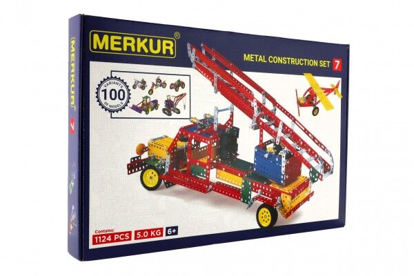 Stavebnice MERKUR 7 100 modelů 1124ks 4 vrstvy v krabici 54x36x6cm