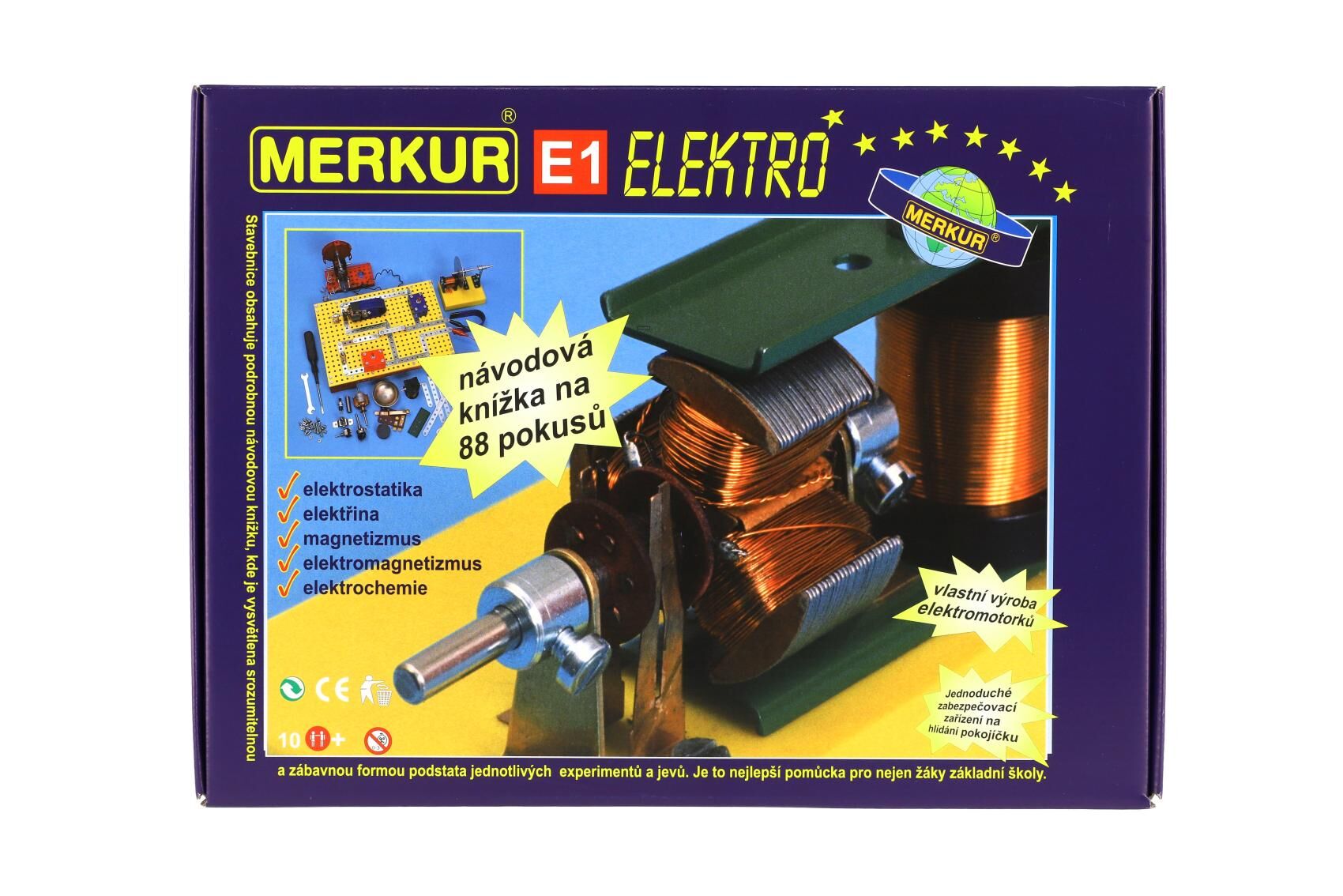 Stavebnice MERKUR E1 elektřina, magnetizmus v krabici 36x28x8cm