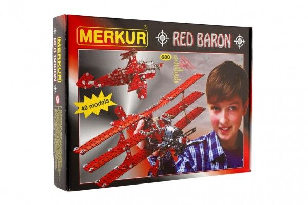 Stavebnice MERKUR Red Baron 40 modelů 680ks v krabici 36x27cm