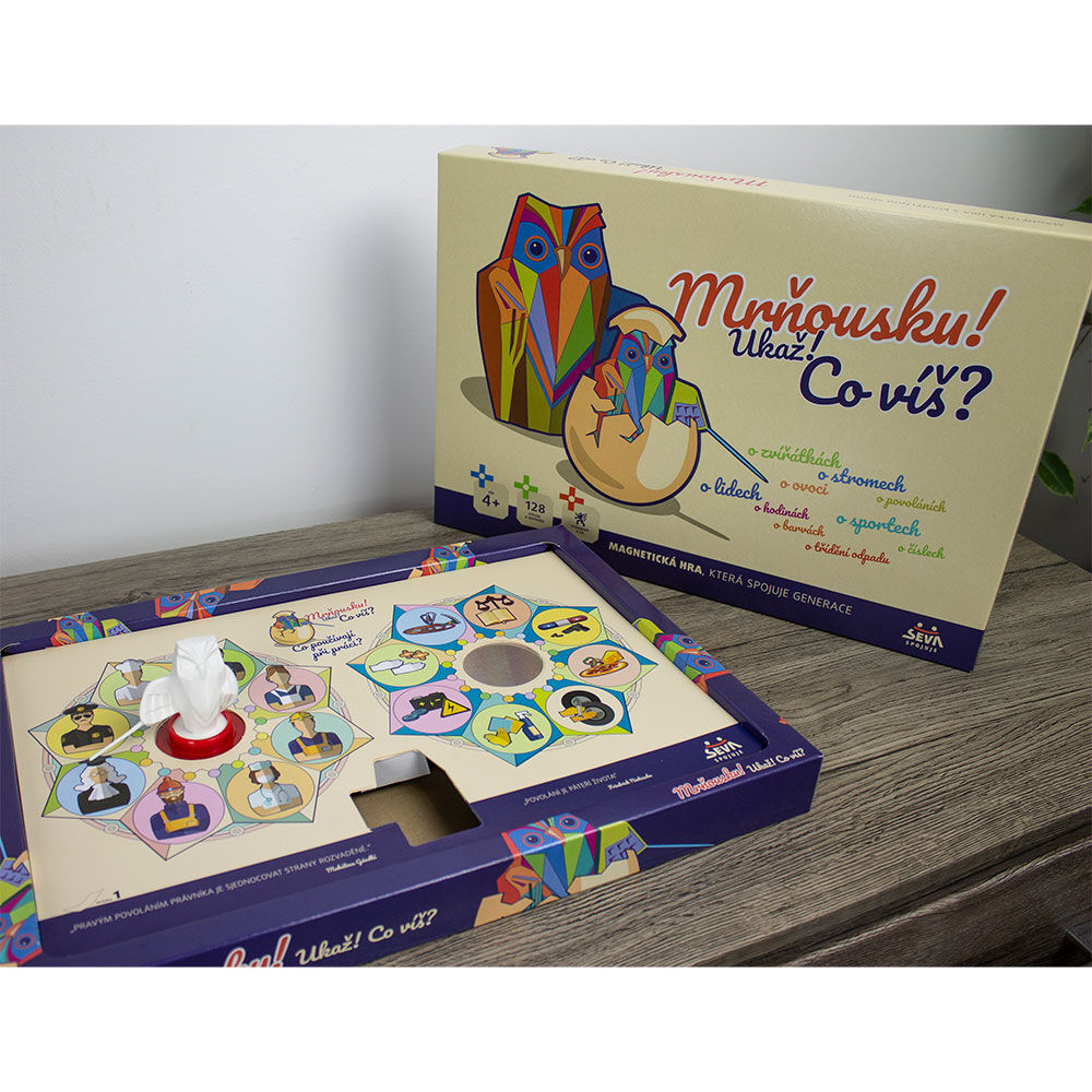 Prověř si své vědomosti zábavnou formou. Budeš chytřejší než moudrá sova? Celkem 128 otázek ze 16 okruhů. Vyber si otázku. Pokud nebudeš znát správnou odpověď, moudrá sova ti ji zodpoví. Varianta pro mladší děti legendární zábavné vědomostní hry "Ukaž! Co víš?".