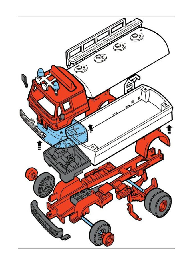 - Balení obsahuje barevné dílky stavebnice, aršíky polepů a návod na sestavení.