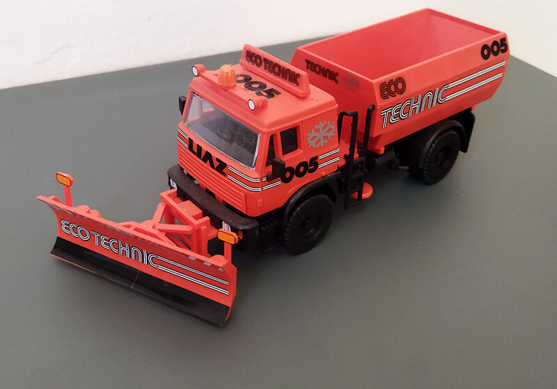 - Propracovaný tvar: Nástavba věrně imituje zásobník na posypový materiál s charakteristickým zkosením stěn pro plynulý sesuv soli či písku.