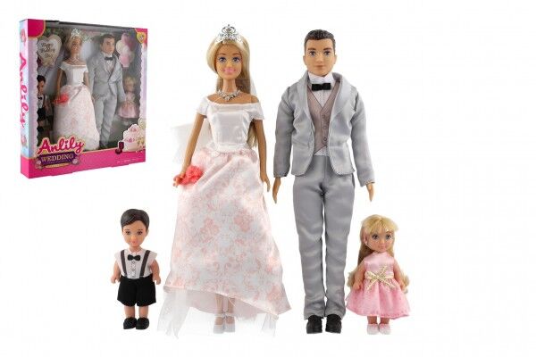 Panenka jako nevěsta se ženichem a dětmi. V krabici je celá rodina, která je oblečena na svatbu. Nevěsta má krásné šaty, ženich oblek a děti jsou také společensky oblečené. Chceš mít celou rodinku? V tom případě je tento set pro tebe ten pravý. Zažij s touto rodinkou nejen svatební den.