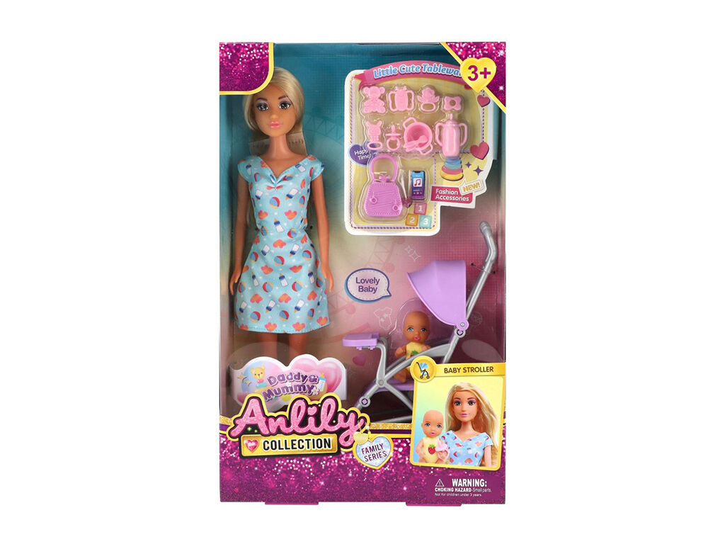 Panenka Anlily s holčičkou a kočárkem + doplňky 30cm