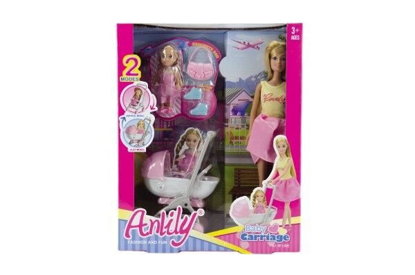 Sada panenka Anlily s holčičkou a kočárkem + doplňky plast v krabici 27x34x9cm