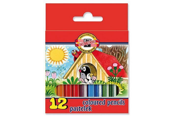 Souprava šestihranných pastelových tužek polovičních. Pastelky jsou v dřevěném plášti a balené po 12 odstínech do kartonové krabičky. Zanechávají sytou stopu a jsou vhodné pro školáky i univerzální použití.