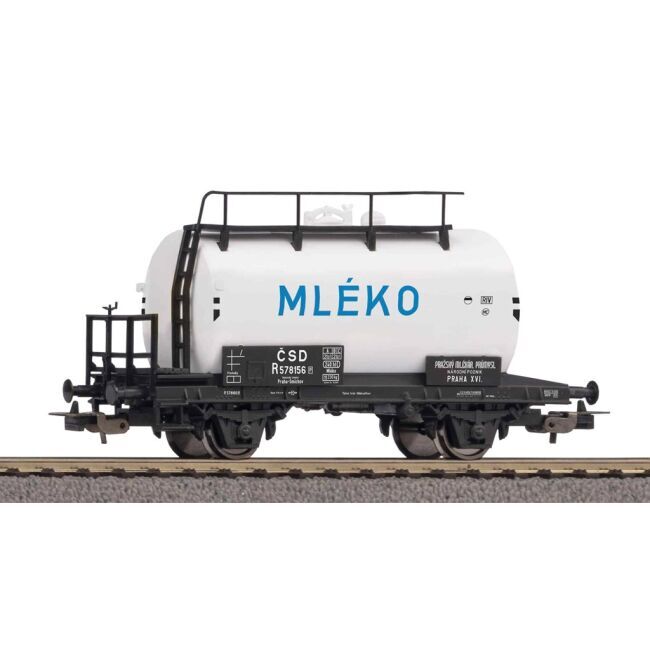 Představujeme Vám dvounápravový cisternový vůz Československých státních drah určený pro přepravu mléka, jak napovídá nápis na cisterně. Mezi jeho přednosti patří robustní konstrukce, detailní provedení a vynikající jízdní vlastnosti.