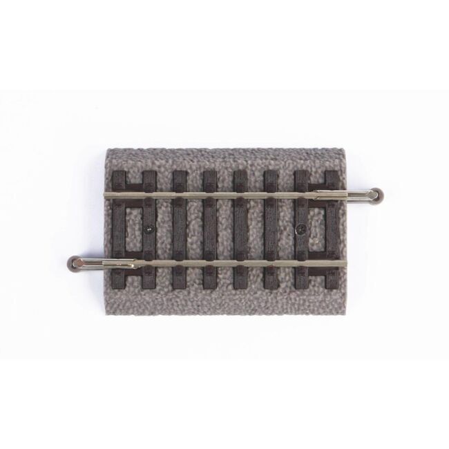 Přímá kolej s detailní reprodukcí dřevěných pražců na štěrkovém podloží, ve věrných barvách.