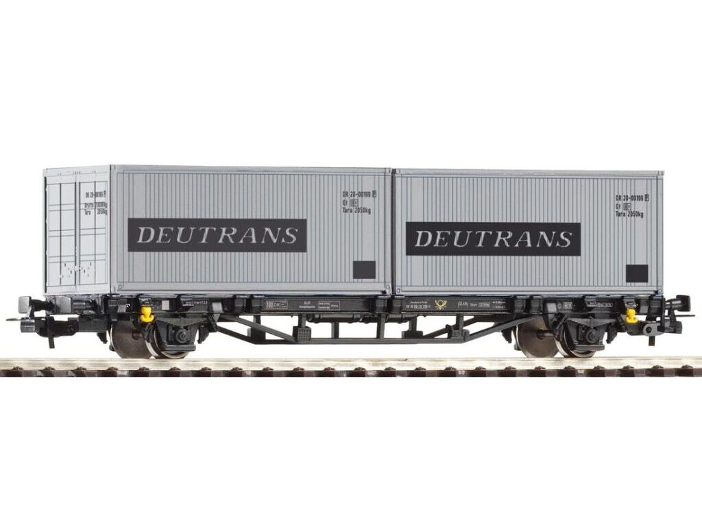 Dvounápravový plošinový vůz DR třídy Lgs579 s dvěma volně uloženými a detailně vyvedenými dvacetistopými kontejnéry Deutrans. Zaujme barevně kontrastními detaily, propracovaným výliskem a potiskem nejvyšší kvality. Pro vagón se nabízí doplňky v podobě rozmanitých kontejnerů.