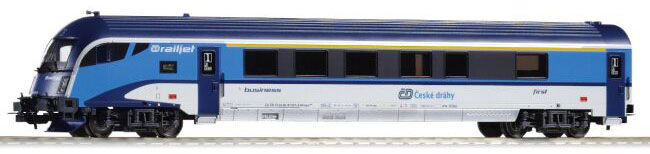 Čtyřnápravový koncový řídící vůz Afmpz 1. třídy Railjet ČD v aktuálním laku a potisku. Bílé/červené LED osvětlení se mění v závislosti na směru jízdy a model je připraven pro snadné dovybavení ovládacím dekodérem. Slouží uceleným soupravám s vagony Railjet, které harmonicky doplní.