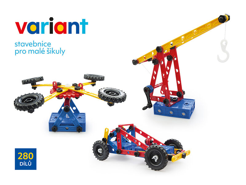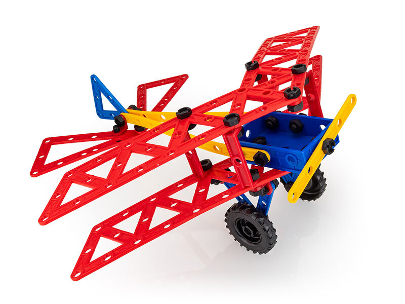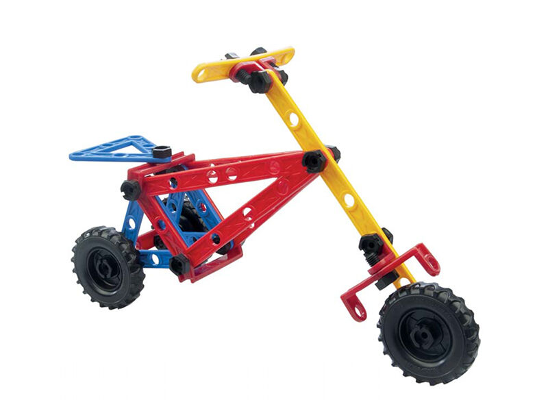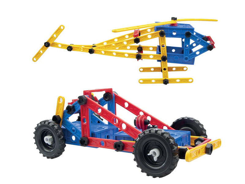 Polytechnická stavebnice dílů z plastické hmoty. Široká možnost různých sestav podle přiloženého návodu i vlastní fantazie.