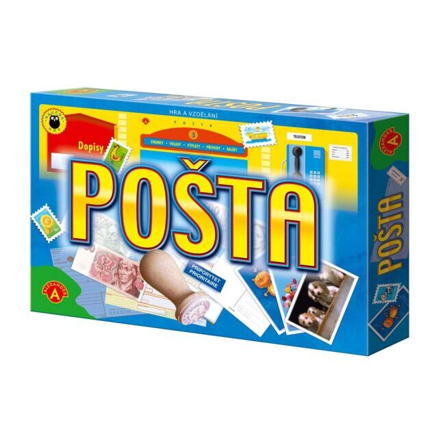 Nová a skvělá zábava při hře "NA POŠTĚ". Celý poštovní úřad máš v jedné krabici. Rozlož si svou přepážku, vyndej peníze,známky,obálky,složenky, podací lístky, pohledy, razítko a můžeš si začit hrát! Pozvi kamarády ať si přijdou poslat dopisy, zaplatit složenku nebo vybrat peníze, zažijete spousty legrace. Nevíš si rady s vyplněním složenky? Pomůžou Ti návody včetně vysvětlení k jednotlivým formulářům. Na poště už se neztratíš!