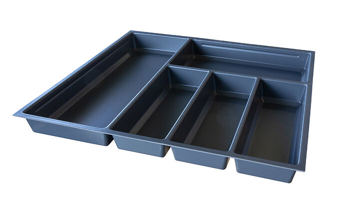 Vložka příborníku SKY pro různé typy zásuvek. Kombinace pevných přihrádek a pohyblivých přepážek (k dokoupení zvlášť). Pro různé typy zásuvkových systémů - StrongMax, Legrabox, nebo i jiné typy (možno zúžit a zkrátit). Barva antracit.