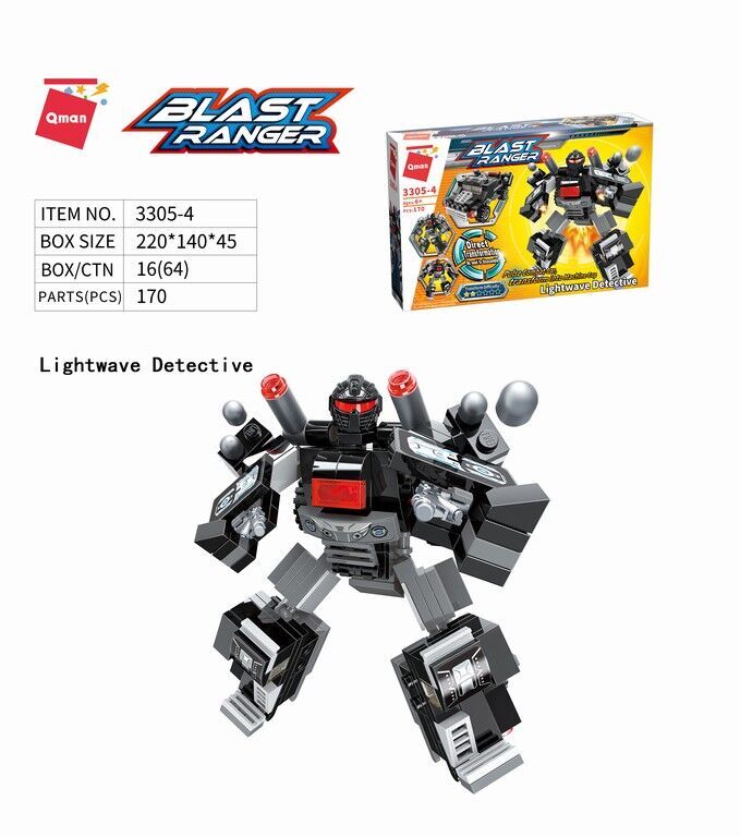 Přeměňujte roboty ve vozidla a naopak, snadno a bez nutnosti je rozebírat! Ve výkonném autě dřímá robotický strážce ihned připravený chránit svou posádku, přesně jako ve filmu! Vysoce variabilní stavebnice Qman z pestrobarevných plastových kostiček lze kombinovat s podobnými stavebnicemi mnoha dalších významných výrobců. Vyrobeno z kvalitního, nezávadného a odolného, ABS plastu. Baleno v pestře potištěné papírové krabičce.