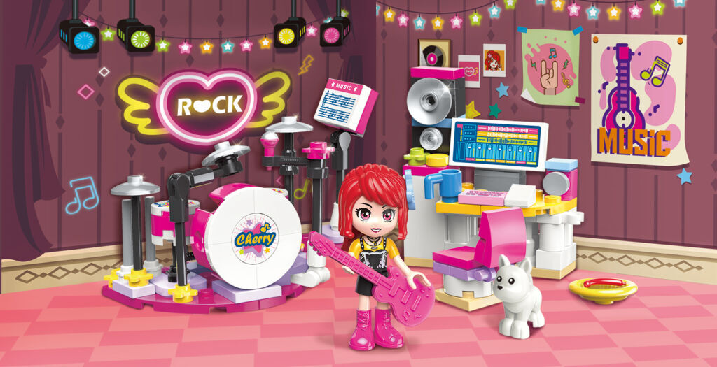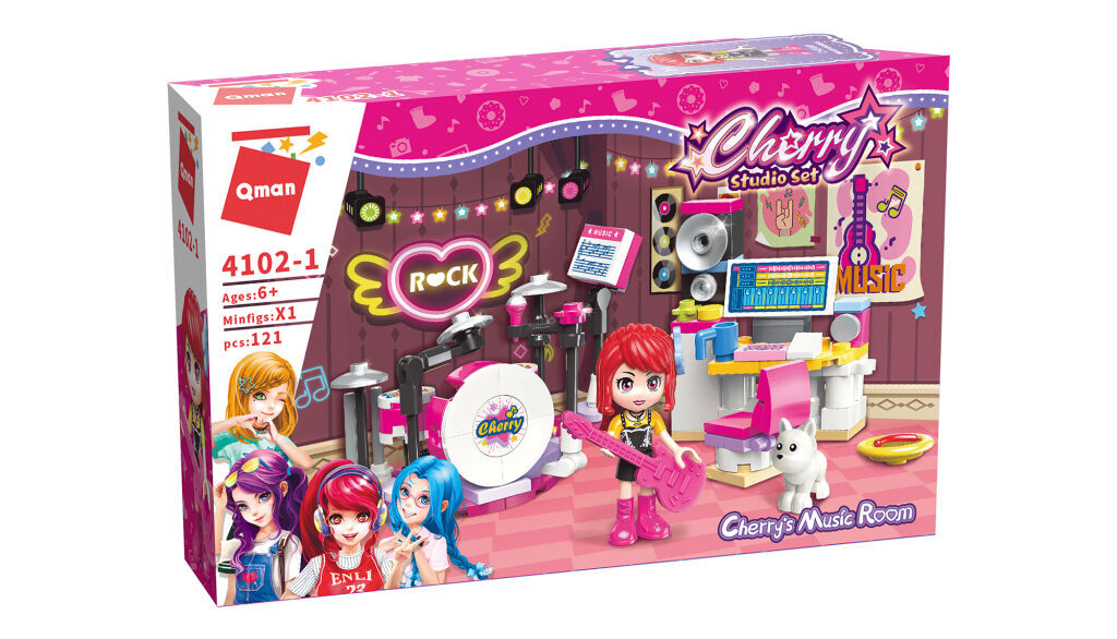 Poznejte jedinečnou osobnost malé Cherry. Vybavení zkušebny je připraveno pro píseň, která dobude hitparádu. Vysoce variabilní stavebnice Qman z pestrobarevných plastových kostiček lze kombinovat s podobnými stavebnicemi mnoha dalších významných výrobců. Vyrobeno z kvalitního, nezávadného a odolného, ABS plastu. Baleno v pestře potištěné papírové krabičce.