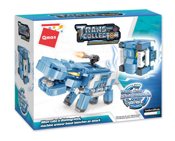 Když se kostka rozloží, obrněný zvířecí stroj zaujme útočný postoj. Stavebnice akční figury robotického hrocha. Vysoce variabilní stavebnice Qman z pestrobarevných plastových kostiček lze kombinovat s podobnými stavebnicemi mnoha dalších významných výrobců. Vyrobeno z kvalitního, nezávadného a odolného, ABS plastu. Baleno v pestře potištěné papírové krabičce.