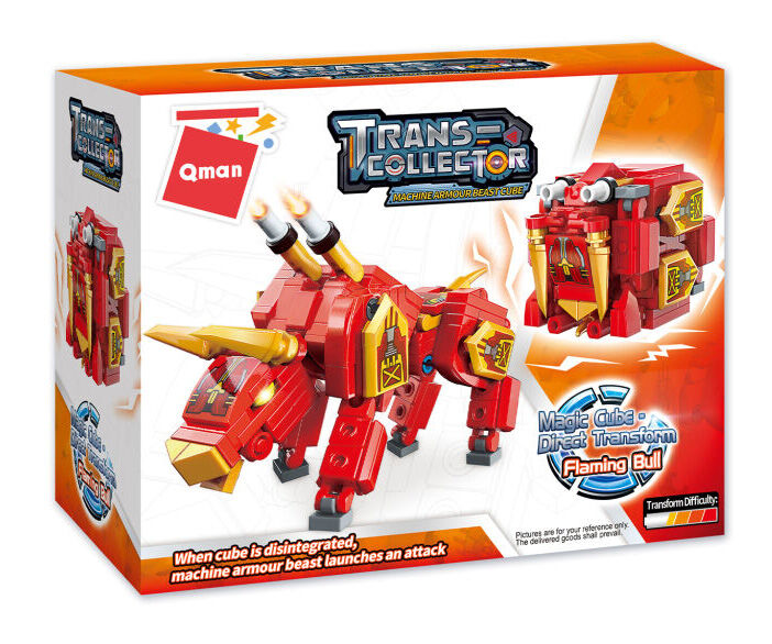 Když se kostka rozloží, obrněný zvířecí stroj zaujme útočný postoj. Stavebnice akční figury robotického býka. Vysoce variabilní stavebnice Qman z pestrobarevných plastových kostiček lze kombinovat s podobnými stavebnicemi mnoha dalších významných výrobců. Vyrobeno z kvalitního, nezávadného a odolného, ABS plastu. Baleno v pestře potištěné papírové krabičce.