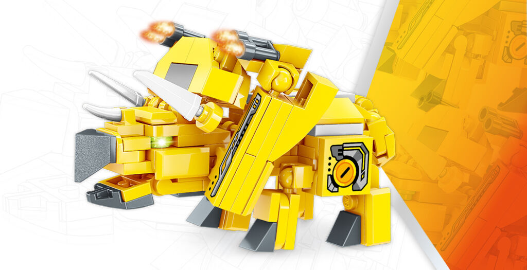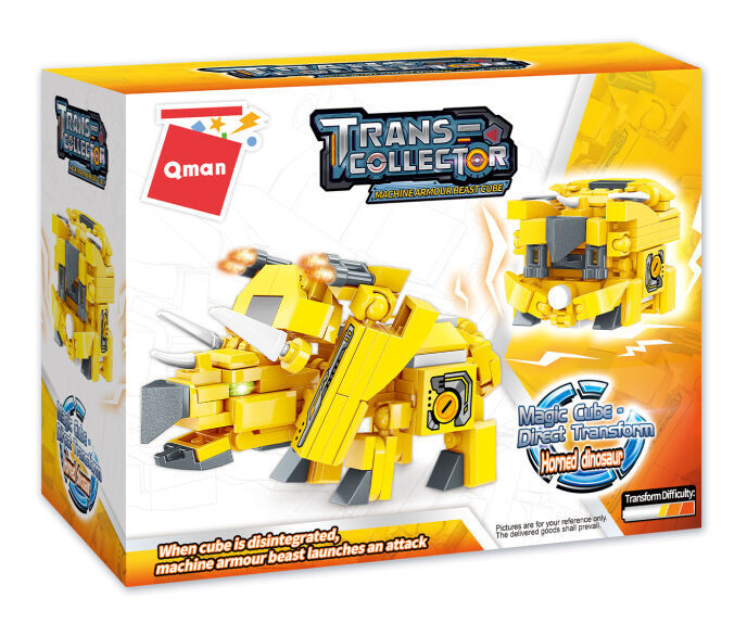 Když se kostka rozloží, obrněný zvířecí stroj zaujme útočný postoj. Stavebnice akční figury robotického dinosaura. Vysoce variabilní stavebnice Qman z pestrobarevných plastových kostiček lze kombinovat s podobnými stavebnicemi mnoha dalších významných výrobců. Vyrobeno z kvalitního, nezávadného a odolného, ABS plastu. Baleno v pestře potištěné papírové krabičce.