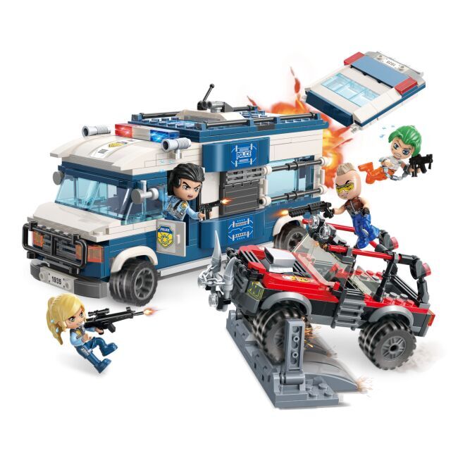 Zabraňte přepadení vězeňského vozu a únosu šéfky nechvalně proslulé bandy. Dokážete zastavovacím pásem zneškodnit vozidlo zločinců? Vysoce variabilní stavebnice Qman z pestrobarevných plastových kostiček lze kombinovat s podobnými stavebnicemi mnoha dalších významných výrobců. Vyrobeno z kvalitního, nezávadného a odolného, ABS plastu. Baleno v pestře potištěné papírové krabičce.