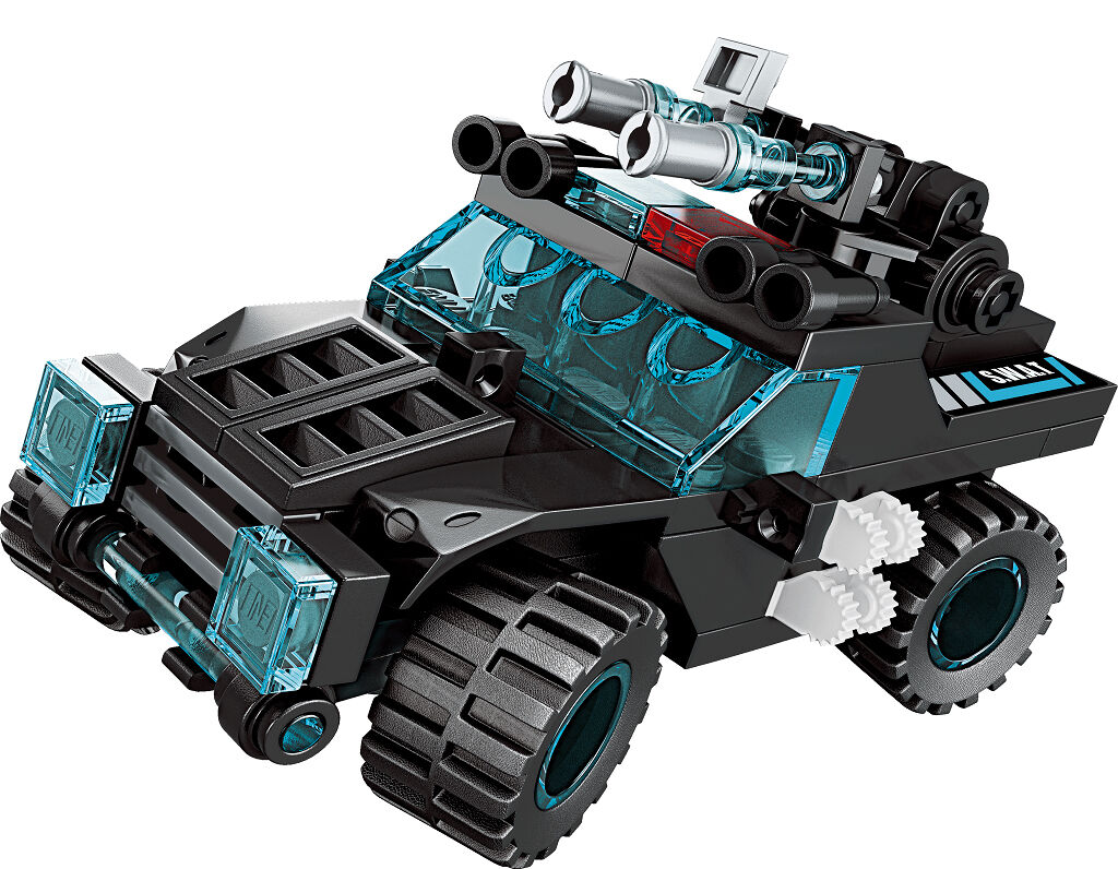 Kombinujte a pozvedejte stavbu i hru na vyšší úroveň! Sada ministavebnic zásahové policejní techniky, jejichž kombinací vznikne možnost sestavit velký ucelený model bojového vozidla. Vysoce variabilní stavebnice Qman z pestrobarevných plastových kostiček lze kombinovat s podobnými stavebnicemi mnoha dalších významných výrobců. Vyrobeno z kvalitního, nezávadného a odolného ABS plastu. Baleno po jednotlivých stavebnicích, v pestře potištěných papírových krabičkách.