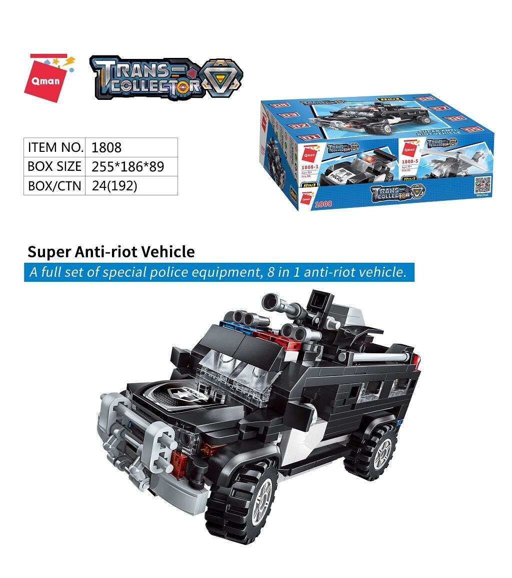 Kombinujte a pozvedejte stavbu i hru na vyšší úroveň! Sada ministavebnic policejní techniky, jejichž kombinací vznikne možnost sestavit velký ucelený model superobrněného zásahového vozidla. Vysoce variabilní stavebnice Qman z pestrobarevných plastových kostiček lze kombinovat s podobnými stavebnicemi mnoha dalších významných výrobců. Vyrobeno z kvalitního, nezávadného a odolného, ABS plastu. Baleno po jednotlivých stavebnicích, v pestře potištěných papírových krabičkách.
