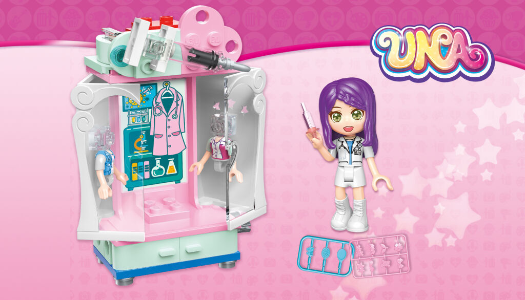 Osm variant stavebnic skříní s tématicky příslušícím vybavením a motivy, každá je vybavena jednou dívčí figurkou. Ve své přepychové šatní skříni vždy najdete, co hledáte, ať už chcete být stewardkou, doktorkou, nebo malířkou. Vyberte si a postupně sbírejte: