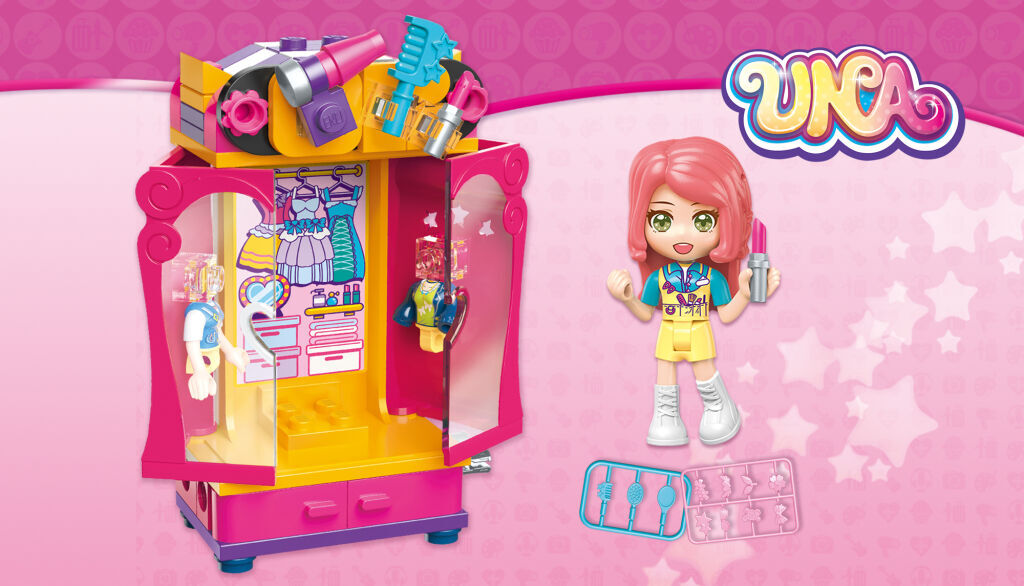 Osm variant stavebnic skříní s tématicky příslušícím vybavením a motivy, každá je vybavena jednou dívčí figurkou. Ve své přepychové šatní skříni vždy najdete, co hledáte, ať už chcete být stewardkou, doktorkou, nebo malířkou. Vyberte si a postupně sbírejte: