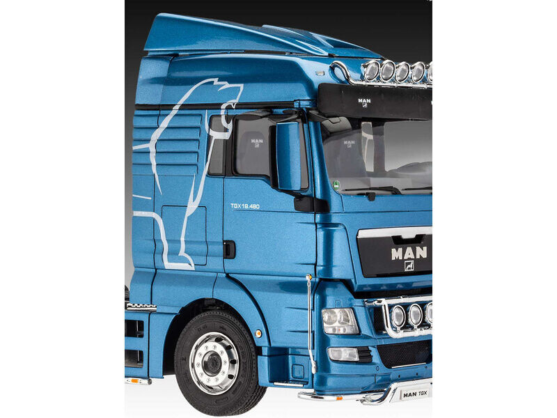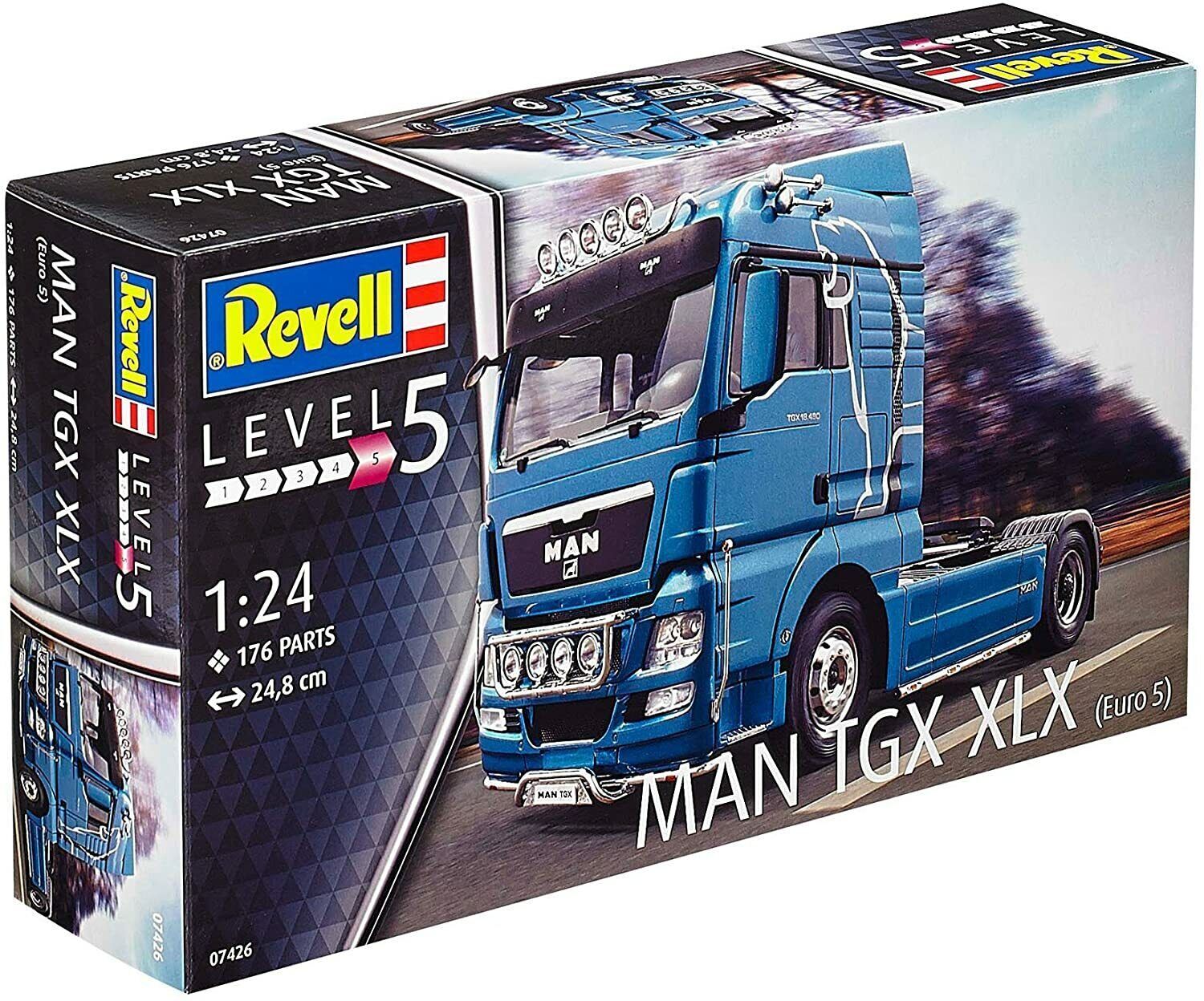 Plastikový model Revell 07426 – auto MAN TGX XLX. Měřítko 1:24, počet dílků ke slepení 176, délka 24,8 cm.