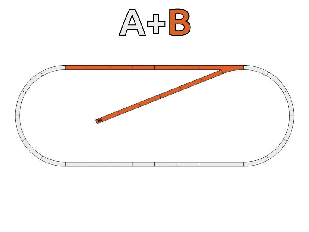 Rozšiřující sada kolejí s detailní reprodukcí dřevěných pražců na štěrkovém podloží, ve věrných barvách. Zahrnuje rovný úsek s jednoduchou výhybkou na kusou kolej. Ke kompletaci tratě z ilustračního obrázku je nutno prve vlastnit, či zakoupit základní ovál s podložím (A) sestávající z 12 ks obloukových kolejí R3 (č. 61123) a 8 ks přímé koleje G200 (č. 61110).