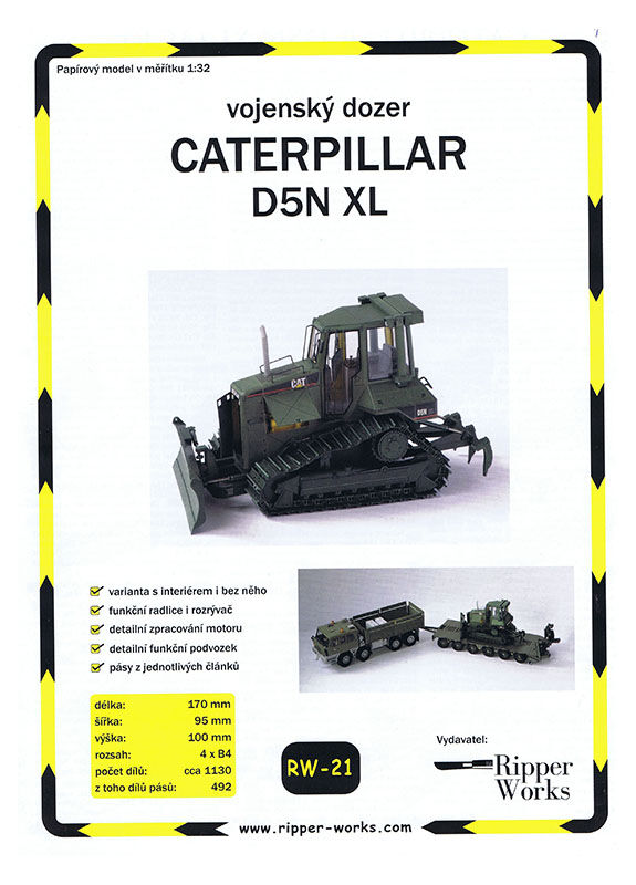 RW 21 Caterpillar D5N XL Cena 440.00 Kč Dočasně nedostupný Skladové číslo 399 Sdílet ks Výrobce: Ripperworks Parametry Měřítko: 1:32 Technologie: Offsetový tisk Typ modelu: Vjenský Značka: Caterpillar Umístění Modely > Papírové modely > Prcovní strojeModely > Papírové modely