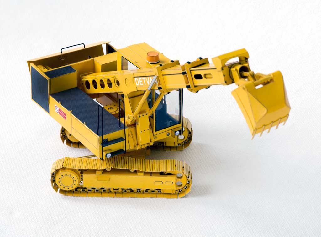Model můžete vytvořit s interiérem kabiny bagristy či bez něj. Nástavba je otočná, prostor pro motor nástavby otevírací, rameno se sklápí, vysunuje (včetně funkčního hydraulického pístu uvnitř ramene), pracovní lopata je otočná a sklopná. Na výběr máte ze tří lopat - základní pětizubové, hladké a urovnávací. Pokud chcete, můžete lopaty ponechat jako výměnné.