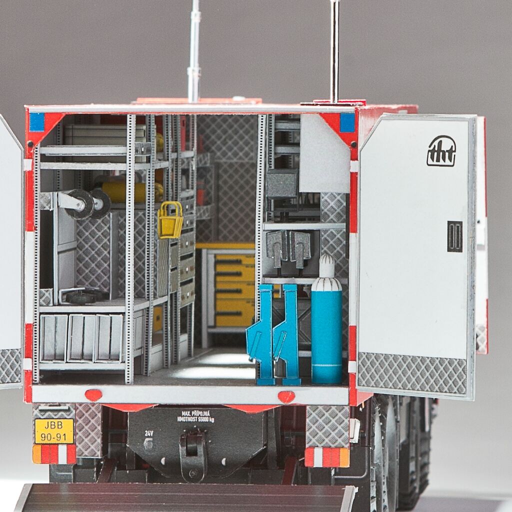 Model můžete vytvořit s interiérem kabiny a nástavby či bez nich, se zatáčecími koly, sklopnou kabinou, funkčními tažnými zařízeními i pohyblivým zadním čelem a osvětlovacími stožáry. Součástí modelu je také vybavení nástavby (motorová pila, rozbrušovačka, hydraulické agregáty, osvětlovací technika, elektrocentrála, přepravník vozík, atd…). Technické vozidlo je určeno jako součást ucelené sestavy modelů HZS SŽDC - v případě potřeby slouží i jako tažné vozidlo podvalníku Transporta P-50 (vydává RipperWorks jako RW-74), místo Tatry 815 AV-15 (vydává RipperWorks jako RW-73). Na podvalník pak můžete naložit vyprošťovací tank VT-55 (RW-75).