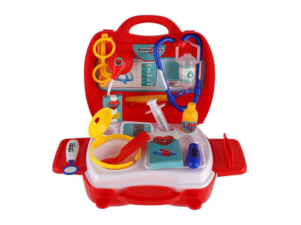 Sada obsahuje vše, co malý lékař potřebuje k ošetření pacientů. Všechny potřebné nástroje jsou uloženy v praktickém kufříku s madlem.