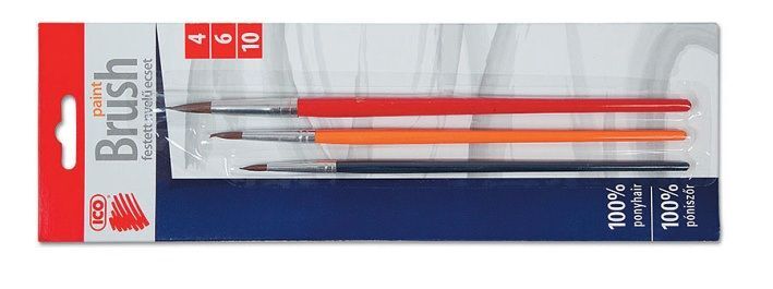 Sada 3 kulatých vlasových štětců č. 4,6,10. Dřevěná rukojeť lakovaná barevným lakem. Dodávané na blistru.