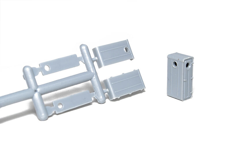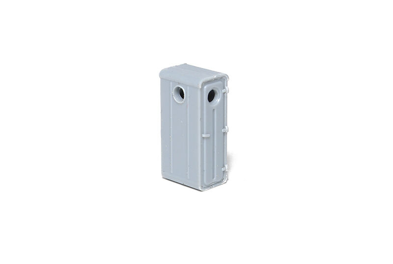 Plastiková stavebnice plechové hranaté brzdařské budky. Tento typ budky byl na nákladní vozy československé výroby montován od konce 60. let. Budku je možné sestavit i s otevřenými dveřmi. Balení obsahuje dvě budky lisované v šedé barvě.