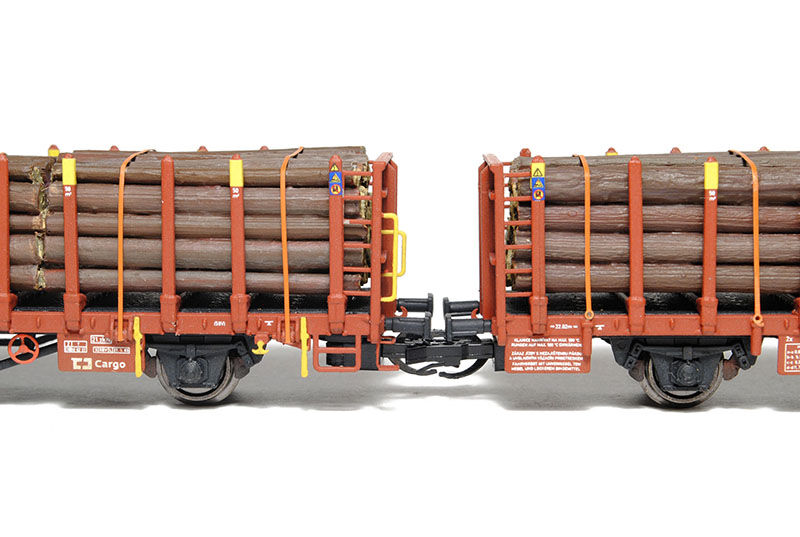 Kompletní stavebnice dvouvozové klanicové jednotky řady Laaps-y 12. Obsahuje probarvené plastikové výlisky na sestavení modelu včetně kinematik, spřáhel, kvalitních soustružených kovových dvojkolí a kovové lepty. Součástí je také náklad dřevěných klád pro oba vozy. Obtiskový aršík obsahuje dvojici provozních čísel, VI. epocha, provozovatel ČD cargo.