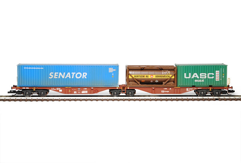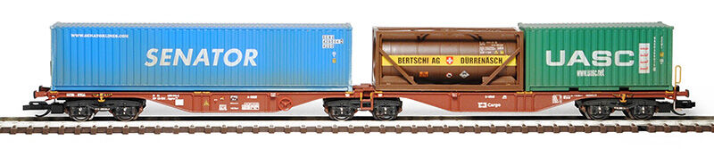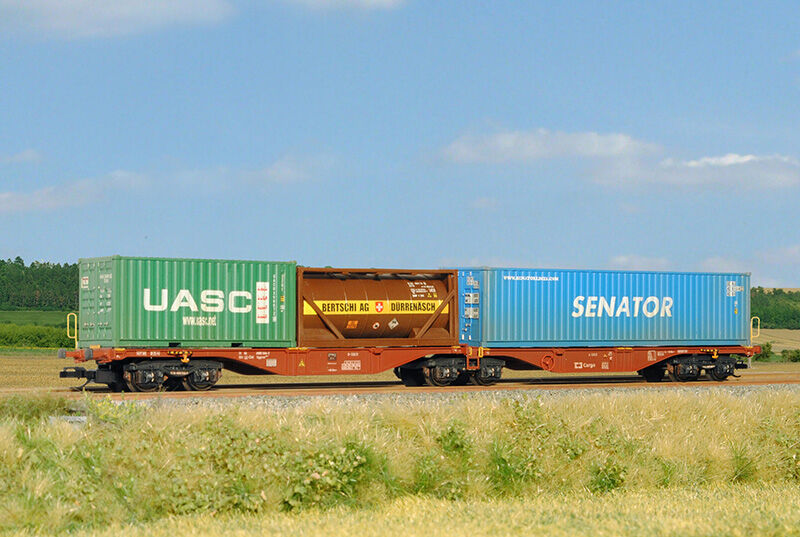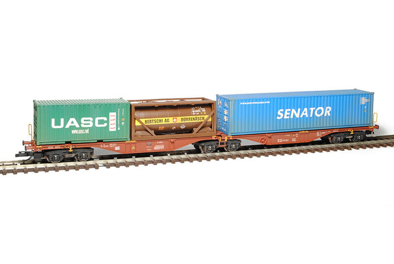 Kompletní stavebnice článkového kontejnerového vozu řady Sggrss 55. Vůz je opatřen kontejnery 1C, 1CC a 1AA. Obsahuje probarvené plastikové výlisky na sestavení modelu včetně kinematik, spřáhel a kvalitních soustružených kovových dvojkolí, kovové lepty, závaží. Kloubové spojení vozu je konstruováno s rezervou pro bezproblémovou průjezdnost nejmenšího poloměru oblouku R 310. Epocha VI., provozovatel ČD cargo.