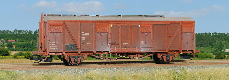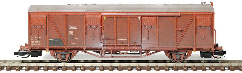 Kompletní stavebnice krytého vozu vyráběného ve vagonce Česká Lípa. Stavebnice představuje vůz v původním stavu skříně. Obsahuje plastikové výlisky na sestavení modelu včetně kinematik, spřáhel, kvalitních soustružených kovových dvojkolí, kovové lepty, závaží a obtisky s dvojicí provozních čísel. Provozovatel ČSD, IV. epocha.