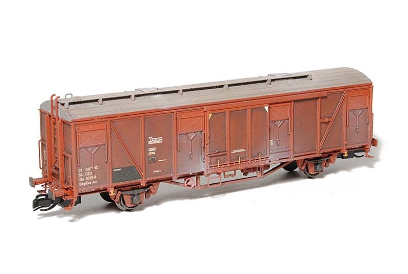 Kompletní stavebnice krytého vozu vyráběného ve vagonce Česká Lípa. Stavebnice představuje vůz v původním stavu skříně. Obsahuje plastikové výlisky na sestavení modelu včetně kinematik, spřáhel, kvalitních soustružených kovových dvojkolí, kovové lepty, závaží a obtisky s dvojicí provozních čísel. Provozovatel ČSD, IV. epocha.