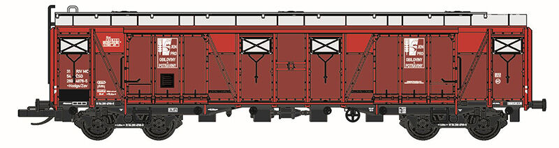 Kompletní stavebnice krytého vozu na přepravu obilovin s výsypkami v podlaze vyráběného ve vagonce Česká Lípa. Obsahuje plastikové výlisky na sestavení modelu včetně kinematik, spřáhel, kvalitních soustružených kovových dvojkolí, kovové lepty, závaží a obtisky. Obtisky nabízí možnost volby provozního čísla a obsahují též variantu nápisů pro stavbu vozu v pestřejší tovární podobě. IV. epocha, provozovatel Československé dráhy.