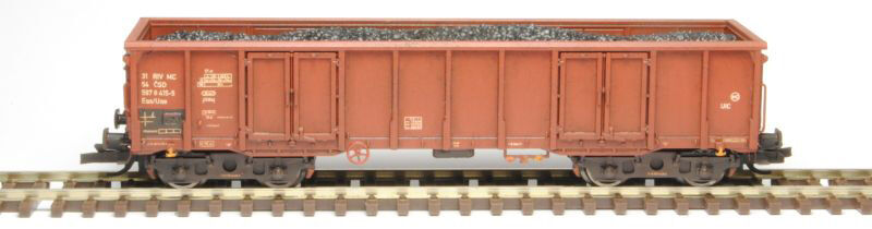 Kompletní stavebnice otevřeného vozu. Obsahuje plastikové výlisky na sestavení modelu včetně kinematik, spřáhel, kvalitních soustružených kovových dvojkolí a imitace nákladu, kovové lepty, závaží a obtisky. Provozovatel Československé dráhy, IV. epocha.