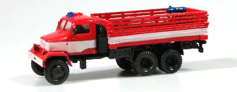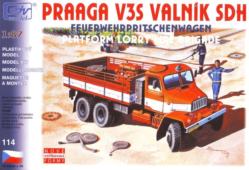 Kompletní plastiková stavebnice hasičského valníku. Obsahuje probarvené plastikové výlisky na sestavení modelu, kovové osičky a sadu obtisků.